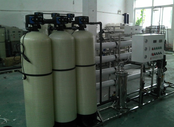 原水→原水加压泵→多介质过滤器→活性炭过滤器→软水器→精密过滤器→阳树脂过滤床→阴树脂过滤床→阴阳树脂混床→微孔过滤器→用水点